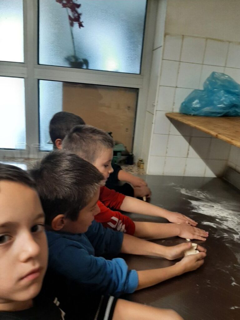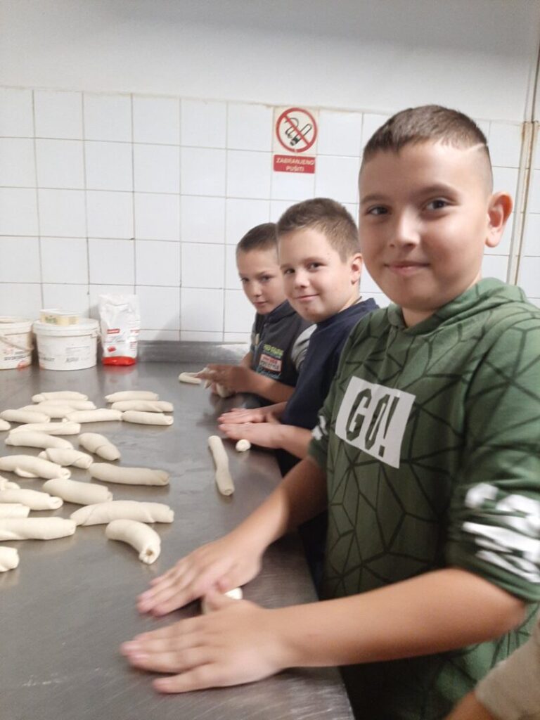 Učenici su spremno zasukali rukave i marljivo mijesili i oblikovali svoja peciva koja su naposljetku zajedno blagovali.